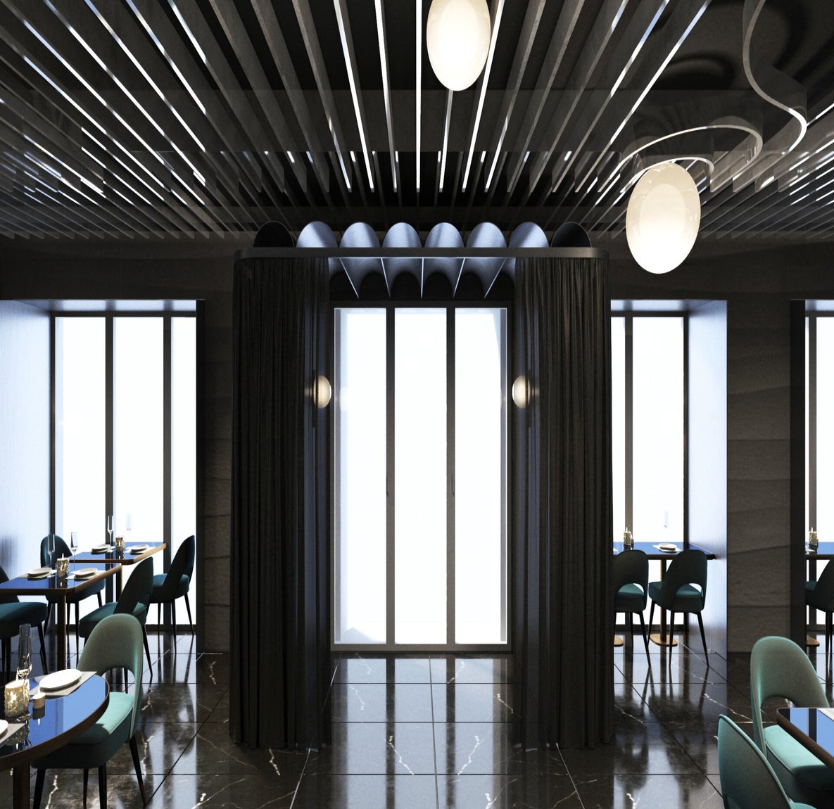 KIN sushi was inspired by the space design from the image of a famous work of art: "The Great Wave off Kanagawa" by Hokusai. The project is expected to be completed in August 2024