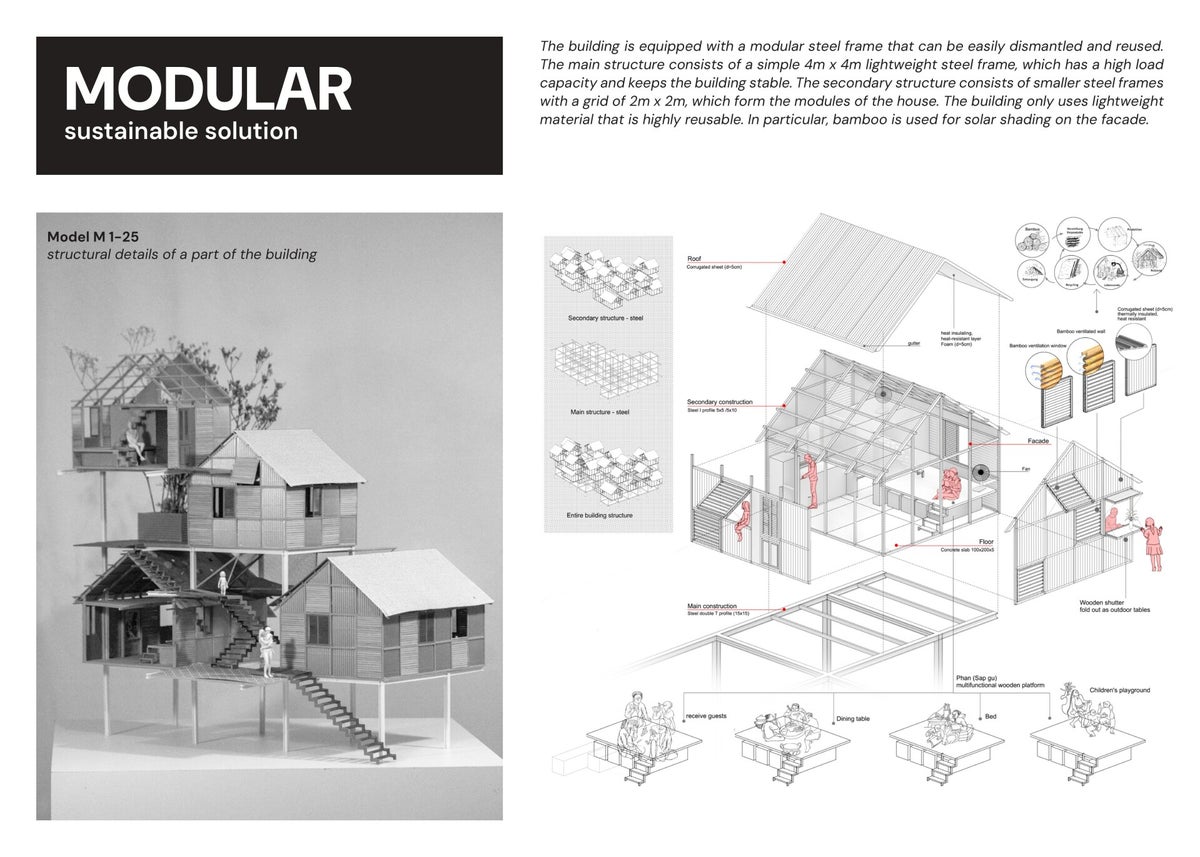 We are fortunate to be selected by AMA company as the unit to develop and design housing models for AMA company's workers. The building is a combination of house modules arranged according to the rules of traditional Vietnamese village structure along the vertical axis.